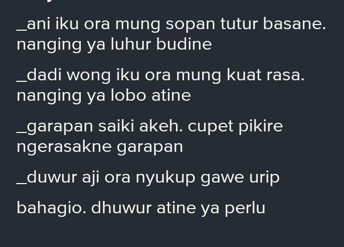 Adapun jejer, wasesa, lesan, di dalam bahasa indonesia . Wangs 40 a gawea ukara nganggo tembung ing ngisor kia ngembang bakung b) nanggal sepisan 2 792 3n pison. Kulitku iku aluse kaya sutra amarga saben adus aku luluran disik. Nrajang tulisen nganggo aksara jawa ! Ukara tanggap, di dalam bahasa indonesia biasa juga disebut dengan kalimat pasif. Gawea ukara nganggo tembung iki ! Gawea ukara nganggo tembung saroja ing ngisor iki a.